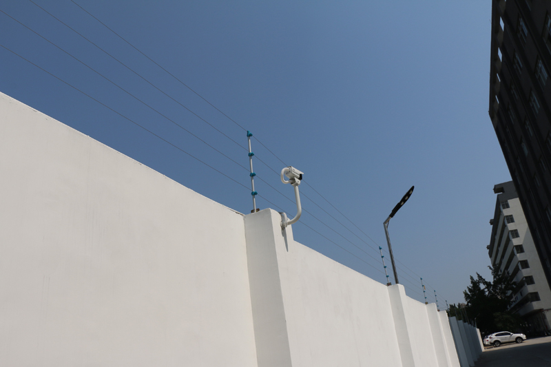 來利眼鏡脈沖電子圍欄防盜系統安裝 總周長1500米,線管盡量靠地平線固定,線路美觀,全部打卡碼,安裝警示牌加以輔佐警示。脈沖電子圍欄安裝穩定性好,安全,誤報率低,以后的日常維護也方便。